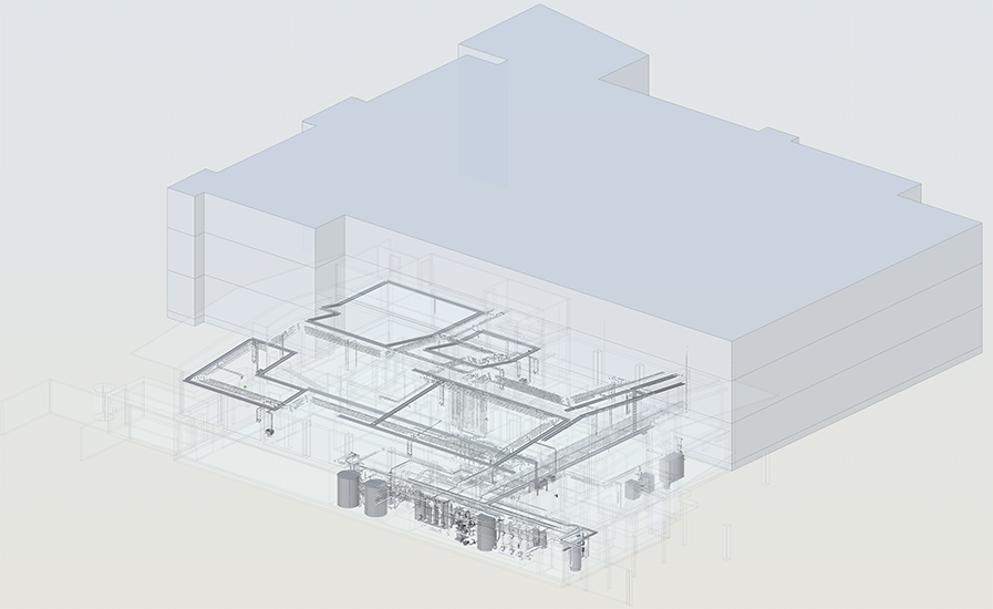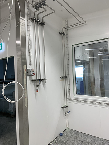 Pour assurer les exigences en termes de process, une distribution de froid, une distribution de chauffage, d'eau potable, d'eau adoucie, d'eau de nettoyage ainsi que l'eau chaude a été calculés, planifiés et installés.